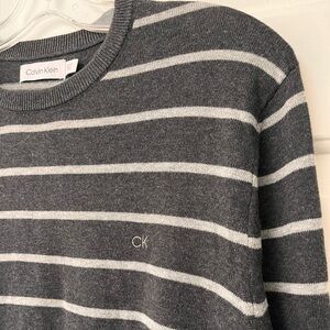 NWOT Calvin Klein Men’s Gray & White Striped Crewneck Sweater
