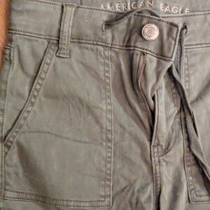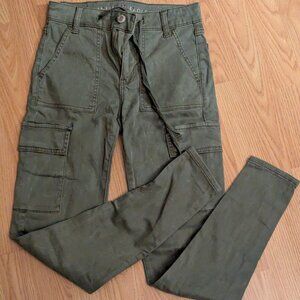 Elevate your wardrobe with these stylish high-rise cargo skinny jeans from America Eagle. Crafted from a comfortable cotton blend fabric with a denim texture, these jeans feature a skinny fit and a straight leg design. The 6-pocket design provides ample space to store your essentials, while the belt loops allow you to add your favorite belt to the outfit. Super Super Stretch! Super cute!