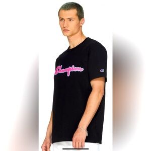 NWOT/ Champion Heritage Chainstitch Logo T-Shirt/black, pink, baby blue script. 🖤🩷🩵