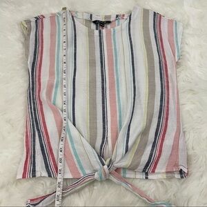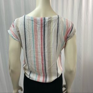 This pretty top by Charlie B. is made from a linen blend and has vertical stripes of pastel colors. New without tags, size XS