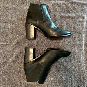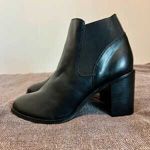 Chelsea Crew vegan leather heeled boots with 3.5" heel.