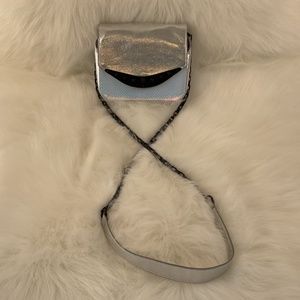 NWOT Circus Sam Edelman Metallic Silver Purse/Black Chain Crossbody Strap/Clutch