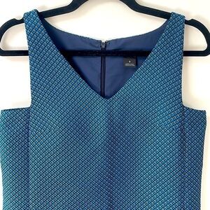NWOT Club Monaco Blue white Dotted Jacquard Shift Dress sleeveless v neck SZ 0