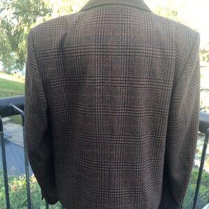 Royal approved Aquascutum pure wool brown and black short blazer great for work or casual look with jeans. Large size PTP 22-23” length 25”