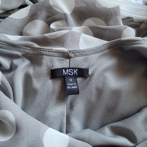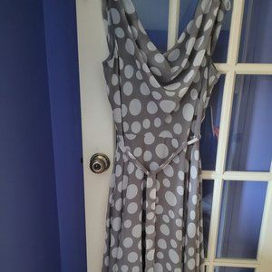 NWOT Cowl-neck Polka Dot Chiffon Dress by MSK, size 12, Gray and White