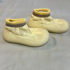 NWOT Cream and Yellow Baby Walker Shoes with Knitted Upper