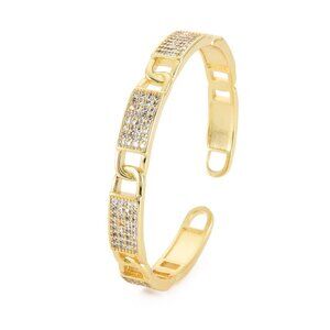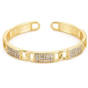 NWOT - Cubic Zirconia Open Cuff Bangle bracelet Real 18K Gold Plated Brass 2/$25