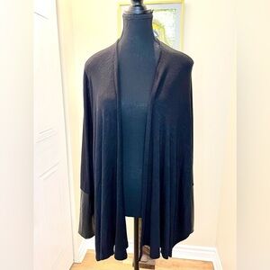 NWOT/ DKNY JEANS black cardigan w/vegan leather forearm panels/dolman sleeves🖤