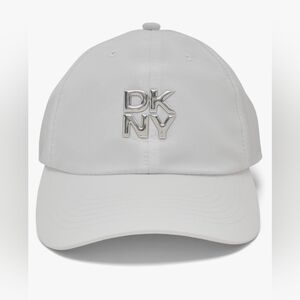 NWOT DKNY Women's White Baseball Cap/Hat With Silver Mettalic Raised Logo