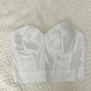 STYLISH COMFORT: The Noemi from our Bridal Collection is an elegant strapless Tricot bustier made to flatter the figure with an extra low back