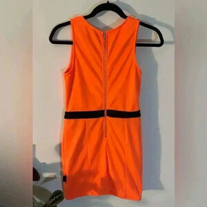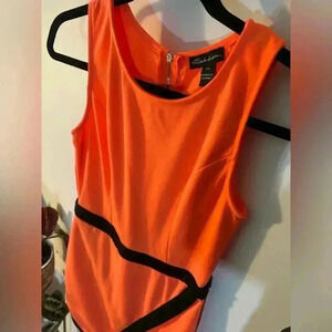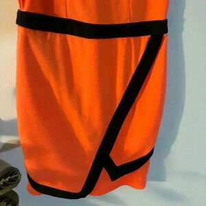 *NWOT* gorgeous orange dress with bold black pin striping. Perfect condition, never worn. Flattering fit.