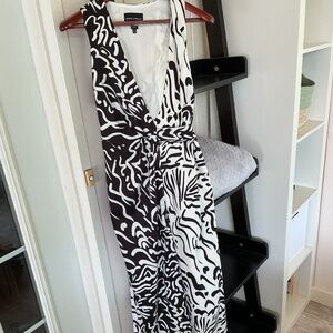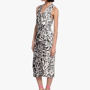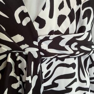 NWOT Donna Morgan Black and Ivory Print Silky Wrap Dress - 4/6