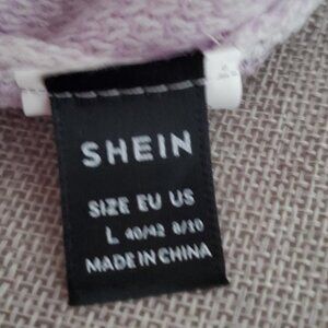 Mauve plaid sweater with drop shoulders, round neck, long sleeves. 100% Acrylic. Size Large. New without tags. Never worn.