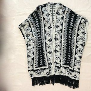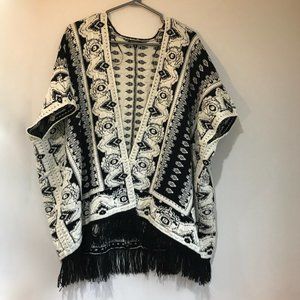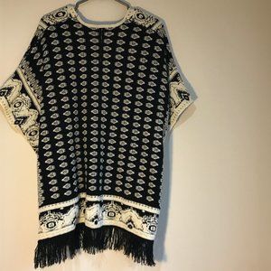 Dynamite black and cream coloured acrylic/nylon knit shawl with tassel detailing around hem. Never worn and in like new condition.