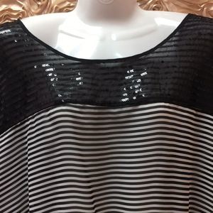 NWOT ECI Black, white striped top/blouse. Good for evening or working in the office. Has sequins on the front.