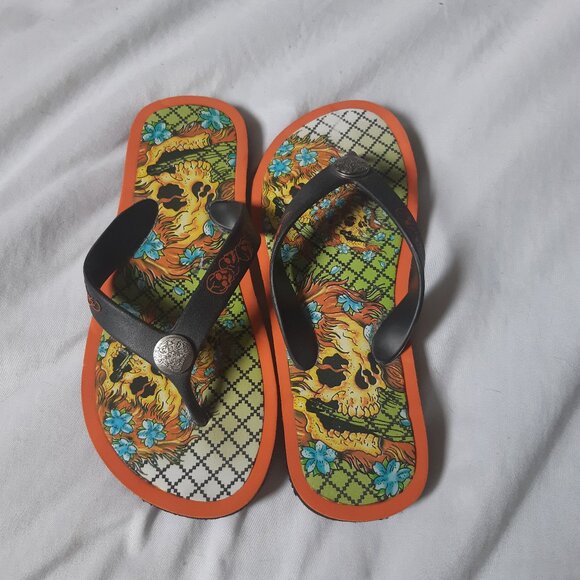 NWOT Ed Hardy flops, never worn, amazing design, size 5-6 but fits up to 6.5, lengh 9.75", so listing as 6.5, NO LOW BALL OFFERS, THEY WILL BE DECLINE!!!
