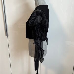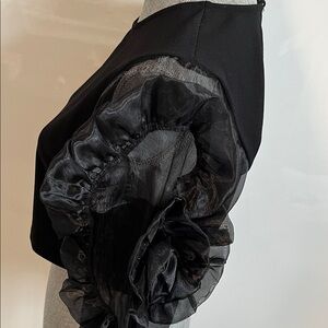 NWOT Elegant Black Fitted Stretch Sheer Rosette Sleeve Top, Size 40/8/M
