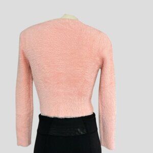 NWOT Elegant Pink Fuzzy Sweater With Tie Detail