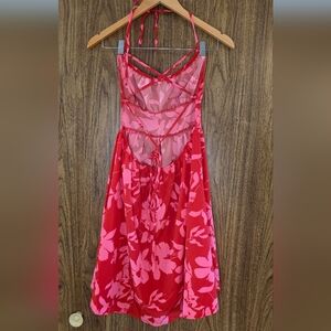 NWOT Elegant Red Floral Backless Dress Size S Summer Dress Knee Length