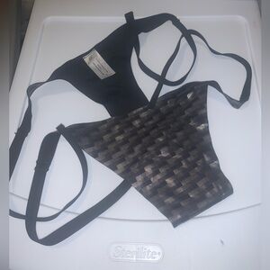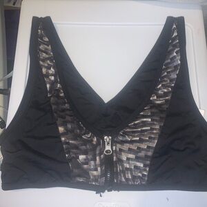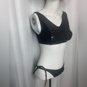 NWOT Elizabeth Jane 2-piece bikini set. Metallic grey and black finish. Tie at waist bottoms with sports style top with zipper at back.