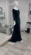 This gown is pure enchantment — a rich green-black shimmer that shifts with every step. The subtle mermaid silhouette, curve-hugging stretch, and dramatic train make it a showstopper from every angle.