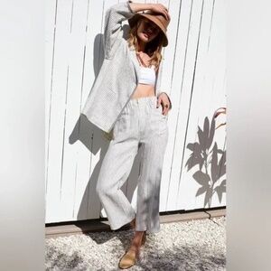 NWOT Emerson Fry Babas Linen Pant Charcoal Stripe Heart Shape Pockets S
