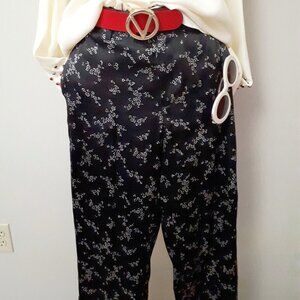 NWOT Equipment Femme black silk micro floral print pants w/ racer stripe detail