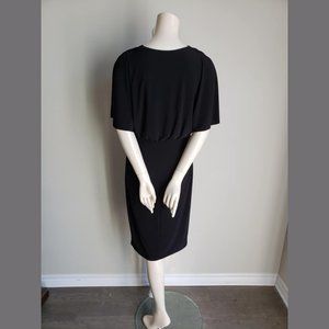 This dress is the perfect LBD! Never worn wrap dress. Fully lined, including lining at bust for modesty. Ruching both sides from hip to thigh. Batwing type short sleeves.