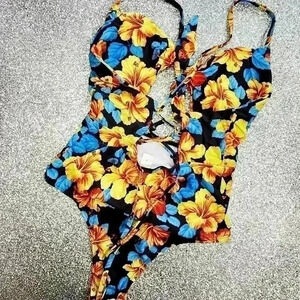 NWOT FLORAL LACE UP /CUT OUT SWIM SUIT