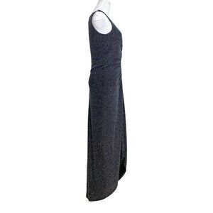 NWOT FRANK LYMAN COLLECTION BLACK SILVER METALLIC RUCHED HIGH LOW EVENING DRESS