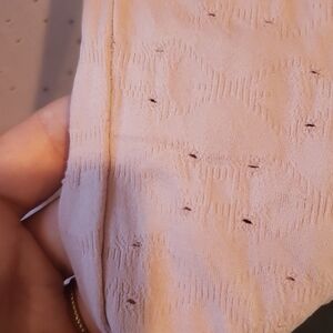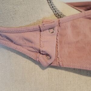 Never worn. Small almost invisible snag on the left arm (see picture). Colour is dusty pink. Same pattern throughout. Spandex stretch in material. Snap close.