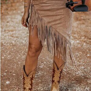 NWOT Faux Micro Suede Assymetrical Western Boho Fringe Skirt - Medium - tassel