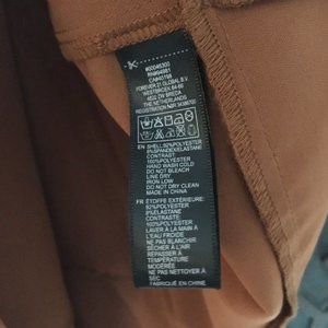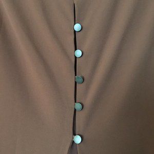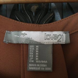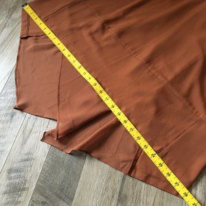 Excellent preowned condition, flowy, chestnut brown by Love 21. This is a beautiful never worn dress that has been carefully stored in a closet. Flowy and comfortable, this dress travels with the breeze. The brass-coloured button up closure in the back gives it a sophisticated and modern touch. Gorgeous dress.