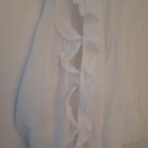 Forever 21 Size Small White blouse. Ends right at waist with bubble draping. Sleeves are pretty with cutouts and ruffle around cutouts. Sleeves are 3/4 length with elastic. NWOT but washed once