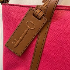 NWOT Fossil Ava Satchel pink with brown leather trim removable shoulder strap