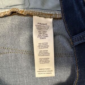 A FRAME signature jean with a comfortable mid-rise waist that hits higher in the back and a relaxed taper through the leg. These have super soft stretch denim.