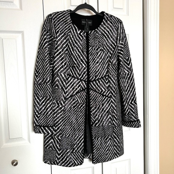 NWOT Frank Lyman 3/4 Length Jersey Jacket White/Black/Silver Zebra Print Size6