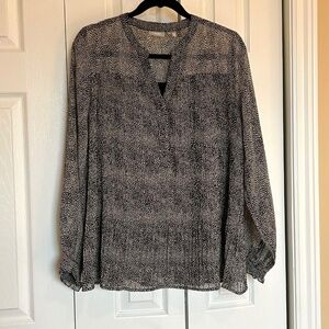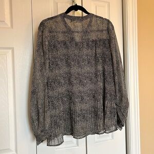 NWOT Fransa Plisse Black/Cream Abstract Print Long Sleeve Blouse Size L