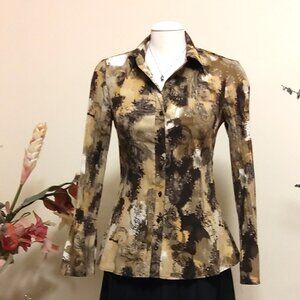 NWOT Fred David Women’s Long Sleeve Loose Shirts Floral Print Pleated Blouses Tops Office Work Size M fir for 8 or 10