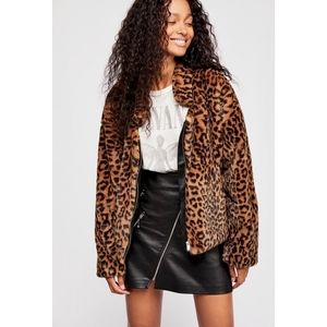 NWOT Free People Faux Fur Cheetah Pleather Coat Jacket