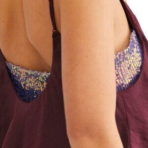 NWOT never worn Intimately Free People Turn It On plum purple satin-like camisole with sequin accent
