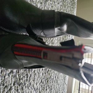 Gray leather, rubber soles, moto boots with red back zip. New. Size 7 fits a bit small. Motorcycle boots.