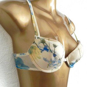 This lovely and lightweight bra is in excellent condition. Delicate blue and yellow flowers make this bra fun and pretty!