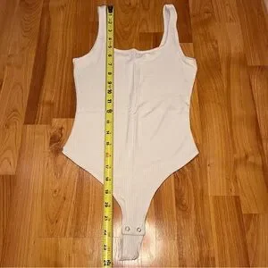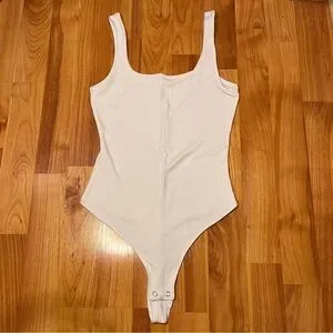 Discover the elegance of this white Bodysuit from Garage, a versatile top that seamlessly blends style and comfort. With a snap-button closure for easy wear and a thong back for a seamless fit under jeans or skirts, this bodysuit offers a sleek silhouette perfect for any occasion. Its minimalist design makes it an ideal choice for layering or wearing solo, ensuring you stay chic and confident.