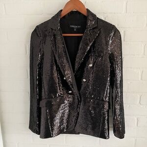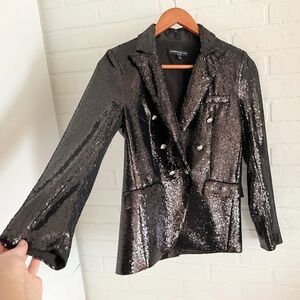 NWOT GENERATION LOVE NYLA SEQUIN BLAZER Double breast black XS Oversized
