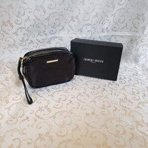 NWOT GIORGIO ARMANI Parfums Black sequins over patent leather zippered pouch