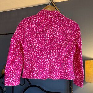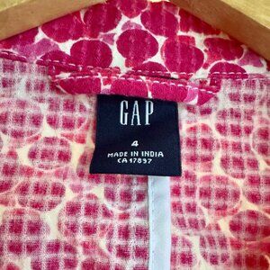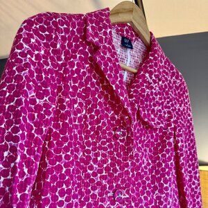 New without tags Gap random bright pink polka dot blazer, size 4. Buttons down front, slight texture, extra button on tag inside. 100% cotton. Bust measures 16 inches laying flat, waist 15.5 inches, length from shoulder to hem is 18 inches. Cat friendly, nonsmoking home.