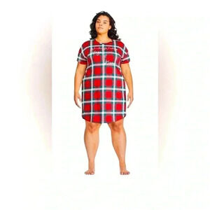 NWOT George Plus Women's Crew Neck Nightgown, 3X, Red, Green & White 🎄