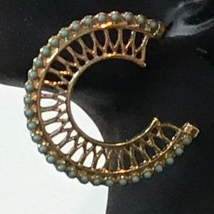 NWOT Gold Tone Women’s 3/4 Hoop Earrings With Blue Detail/Inner Design On Hoop. O/S.