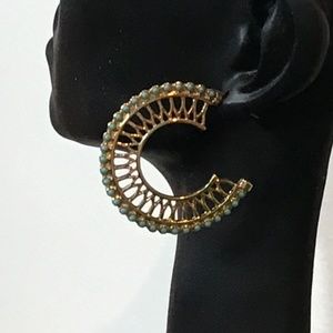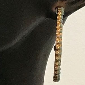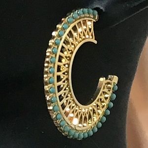 NWOT Gold Tone Women’s 3/4 Hoop Earrings With Blue Detail/Inner Design On Hoop